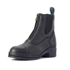 La tige de la botte possède des empiècements en cuir.